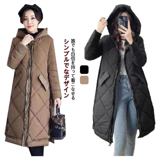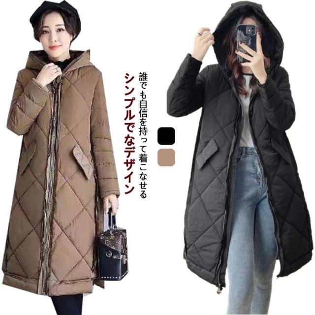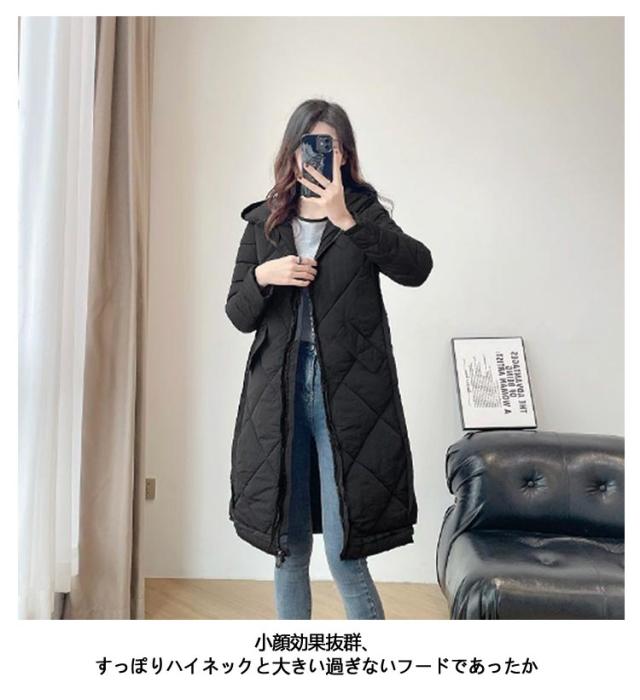 ハイネックコート 大きいサイズ レディース ロング フード ジャケット ダウンジャケット 秋 シンプル ダウンコート アウター 冬服 ベンチコート 無地 ロングコート 暖か 防寒性抜群 ブラック 20代 30代 40代 50代 60代 柔らかい