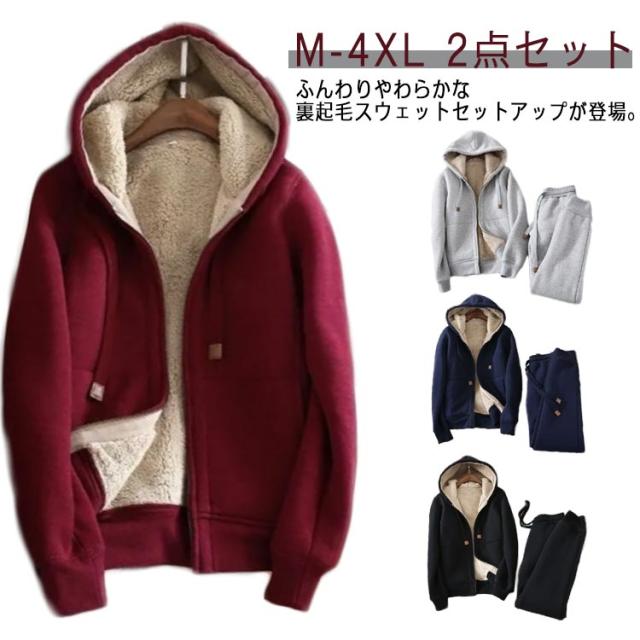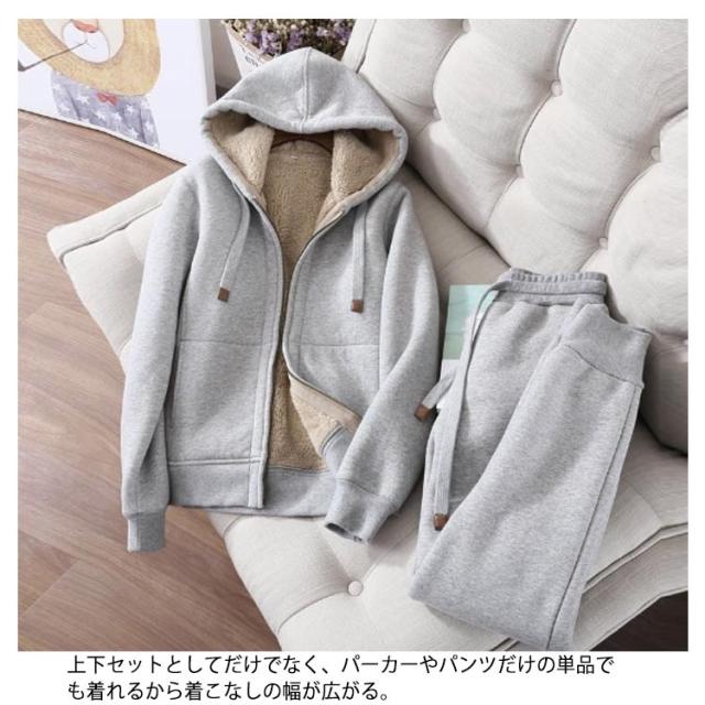 厚手 フード付き セットアップ レディース 裏ボア 裏起毛 パーカー 上下 ジャージ ルームウェア 上下セット 2点セット ジャージ スウェットセット 裏起毛 スウェットパンツ スポーツウェア ジップアップパーカー 部屋着 長袖 秋 冬 大きいサイズ 無地 カジュアル