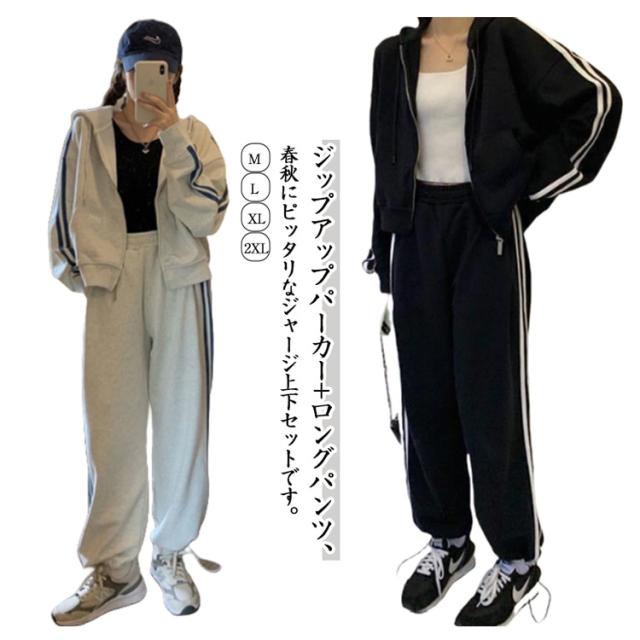 ジャージ 上下セット スウェット 春 レディース 2点セット 秋 韓国ファッション セットアップ ジップアップ トレーニングウェア スウェットパンツ サイドライン パーカー 運動着 ランニング 2本ライン 部屋着 アウトドア 着痩せ ジャージ カジュアル