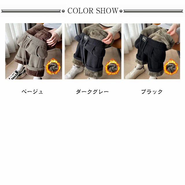 | 全3色!もこもこ裏起毛パンツ♪ 裏はもこもこボア仕様になっていて、寒さからしっかりと守ってくれます。 足のラインを拾わないワイドストレートシルエットは、穿くだけで自信を持てます。 総ゴム仕様のウエストは調整可能な紐付き◎。 | |