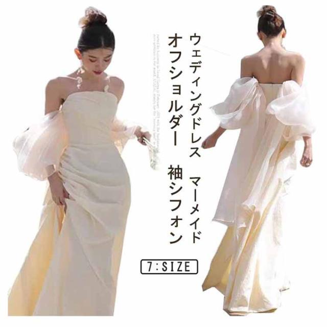 ウェディング ウェディングドレス ウェディングドレス 袖あり マーメイド 白 花嫁ドレス マーメイド ファスナー 袖シフォン かわいい 前撮り オフショルダー 二次会ドレス フォトウェディング 後撮り 春 夏 秋 冬 結婚式