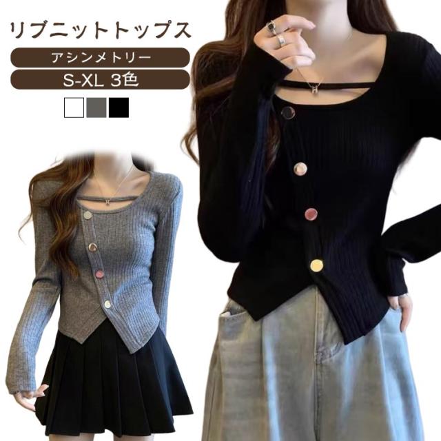 秋 アシンメトリー セーター セクシー トップス 長袖 ブラウス 冬 かわいい リブ 大人 オフィス トップス ニット カットソー 春 韓国風 通勤 20代 30代 40代 OL レディース ファッション ぽっちゃり ゆったり カジュアル
