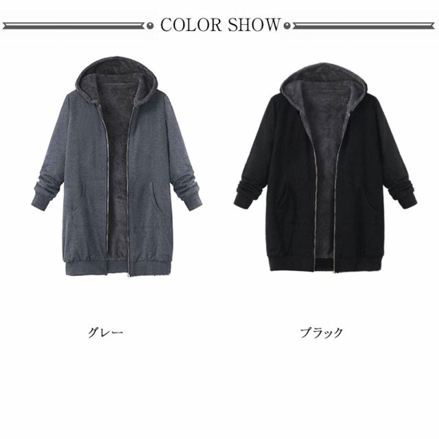 あったか ジップアップ フード付き 裏起毛 レディース 厚手 パーカー ロング 長袖 秋 裏ボア フーディ ミドル丈 チュニック アウター 上着 羽織り 大きいサイズ 無地 防寒 春 カーディガン