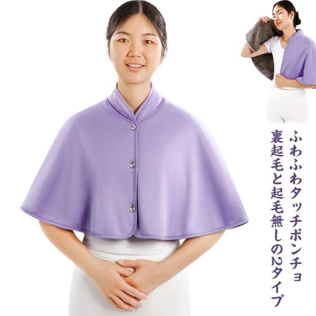 | ふわふわタッチポンチョ 裏起毛と起毛無しの2タイプ 程よいボリュームの無地タイプ 肩をすっぽり覆い衿付きの肩掛けで首肩の冷えをばっちりケア! 前開きデザインで着脱が簡単!サッと手軽に羽織れます。 丸襟とナチュラルなウッドボタンがかわいらしくナチュラルな雰囲気♪ ギフトにもオススメのアイテムです。 | |