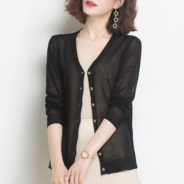 サマー カーディガン シアートップス レディース 長袖 春 夏 秋 薄手 vネック UVカット オフィス カジュアル 韓国ファッション 冷房対策 軽い