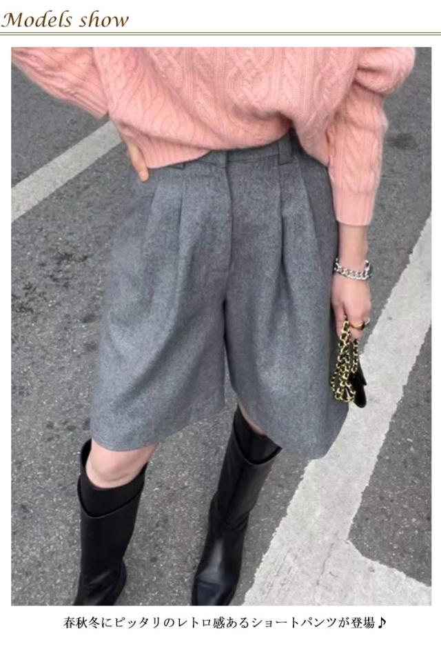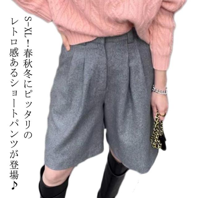 短パン 半ズボン ハーフパンツ 半ズボン ウール混 ショーパン ショートパンツ ウールタッチ素材 膝丈 きれいめ 五分丈 秋冬コーデ ワイドパンツ ハーフパンツ 暖かい 防寒 厚手 シンプル 無地 秋冬 春 秋 女性 ウォッシャブル 大人 大きいサイズ S M L XL
