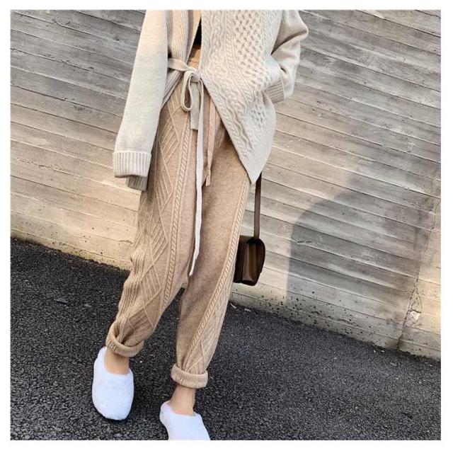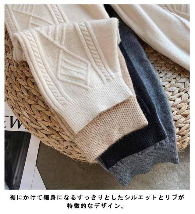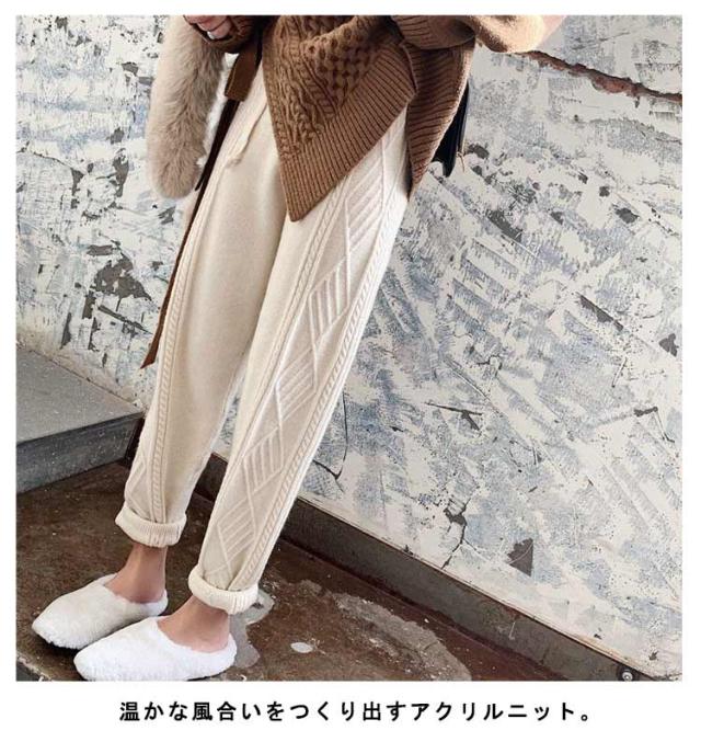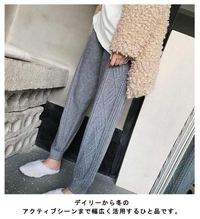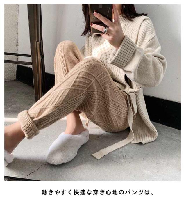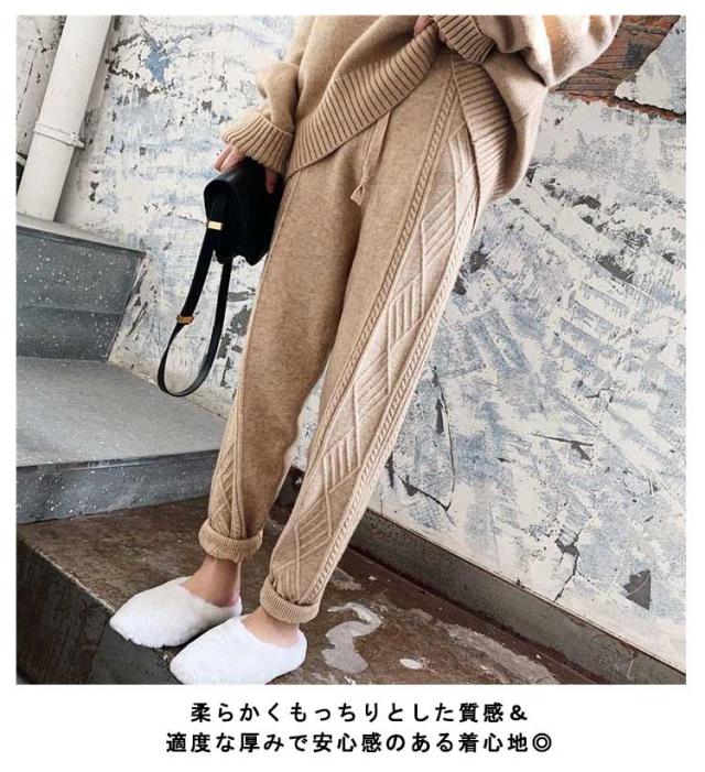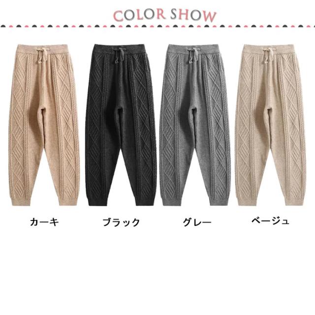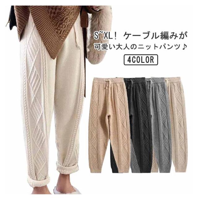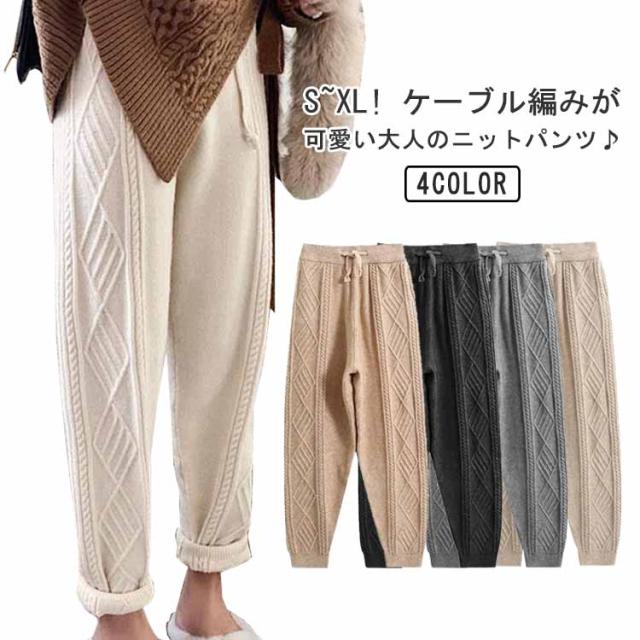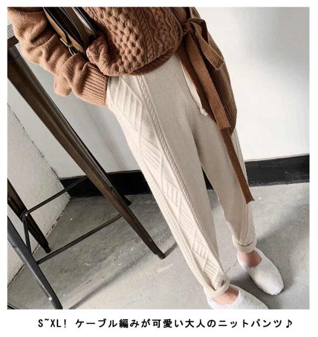 冬 イージーパンツ ケーブル編み レディース秋 ニットパンツ ニット パンツ テーパードパンツ リラックス 春 ウエストゴム ロングパンツ 春秋 秋冬 体系カバー 楽ちん