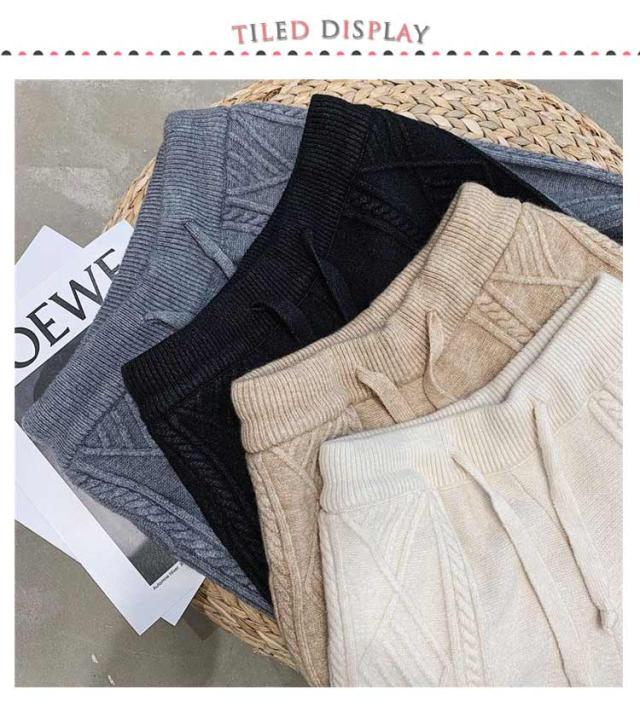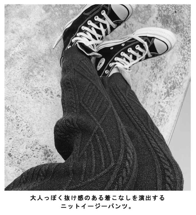 | S~XL! ケーブル編みが可愛い大人のニットパンツ♪ 大人っぽく抜け感のある着こなしを演出するニットイージーパンツ。 温かな風合いをつくり出すアクリルニット。 柔らかくもっちりとした質感&適度な厚みで安心感のある着心地◎ 裾にかけて細身になるすっきりとしたシルエットとリブが特徴的なデザイン。 動きやすく快適な穿き心地のパンツは、 デイリーから冬のアクティブシーンまで幅広く活用するひと品です。 | |