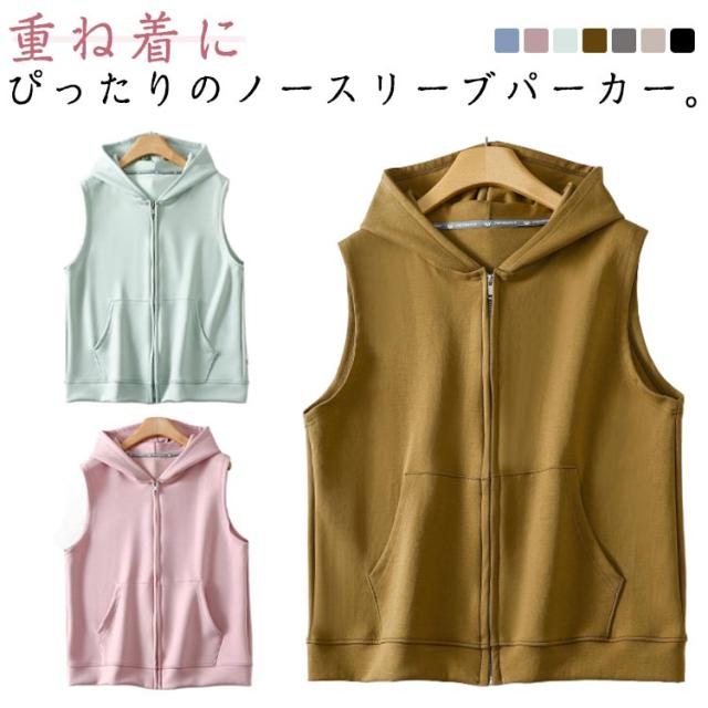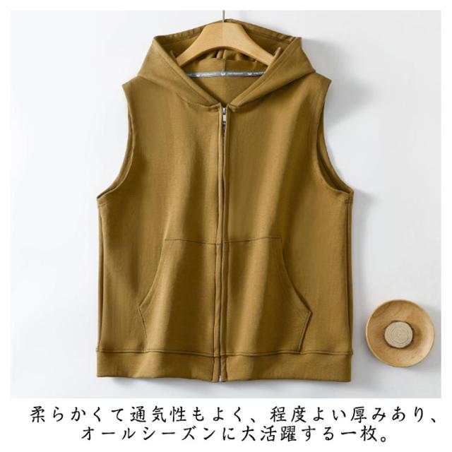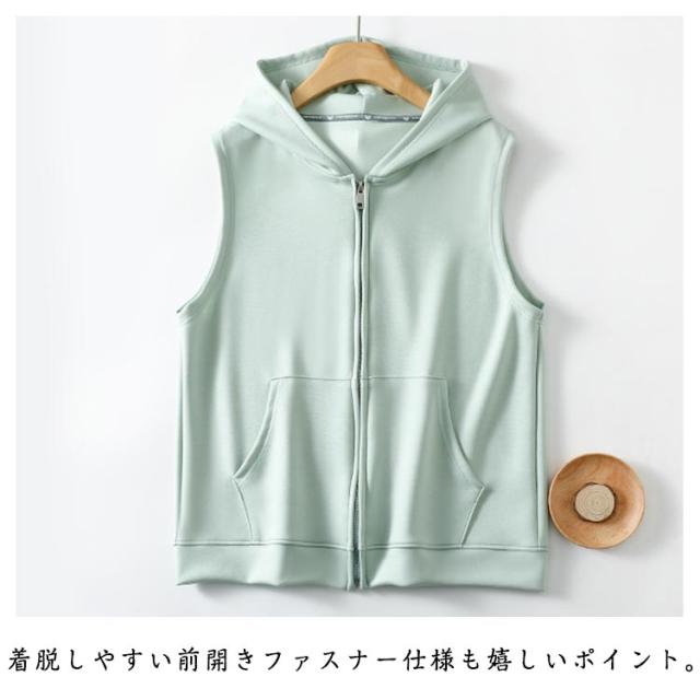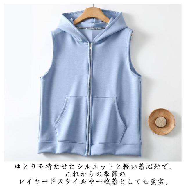 上着 秋用 ベスト ジップアップ フード付き パーカー ノースリーブパーカー ジップパーカー スウェットベスト おしゃれ カーディガン レディース 夏用 パーカーベスト 前開き 春 秋 夏 シンプル レディース