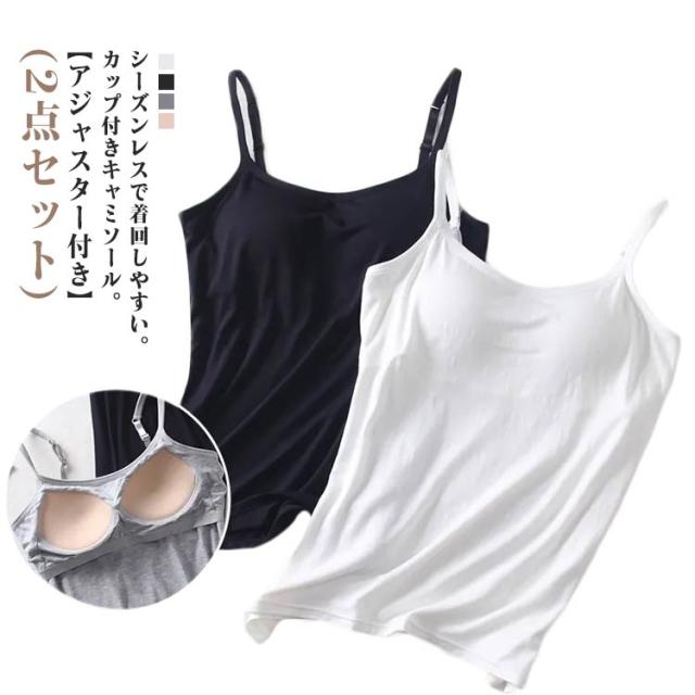 ブラジャー カップ付き キャミソール レディース 小さいサイズ 春 キャミソール 下着 2点 ブラキャミソール ブラトップ パッド 大きいサイズ ホールド サラサラ 吸湿 アンダーゴム ブラキャミ インナー 肩ひも調整 アジャスター付き ストレッチ 夏 秋 オールシーズン