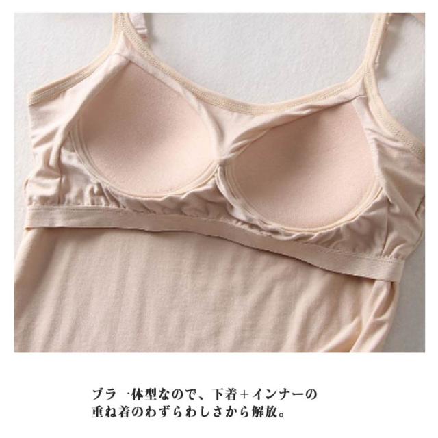 | シーズンレスで着回しやすい。カップ付きキャミソール。【アジャスター付き】(2点セット) ブラ一体型なので、下着+インナーの重ね着のわずらわしさから解放。 下着っぽさがなく1枚で見せて着用できるので、コーディネートの幅が広がります。 ワイヤレスでもトップ位置は高く、自然な美胸メイクを叶えるカップを独自に開発。 食い込みを軽減する伸縮性のある平ゴムを採用 肩紐にはアジャスターがついているので長さ調整可能♪ | |