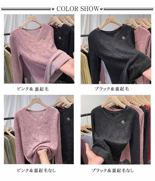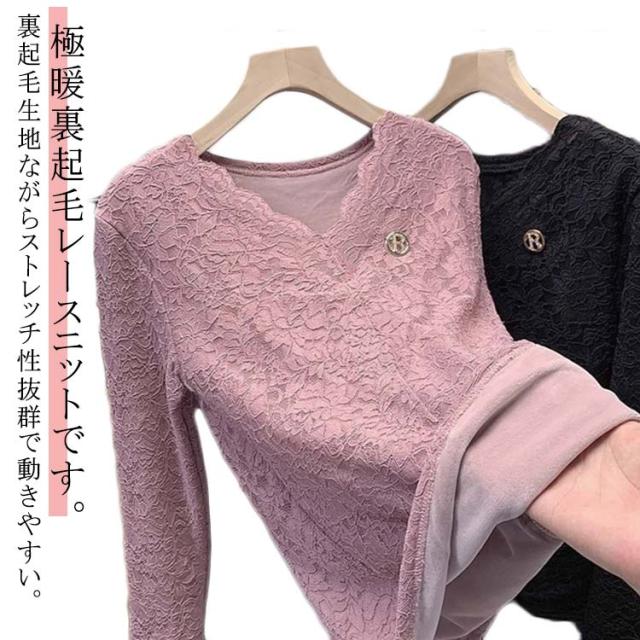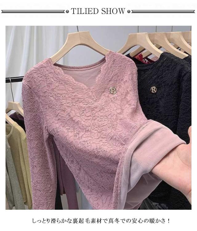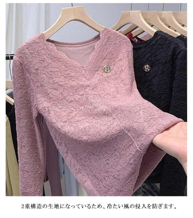 レディース 繊細レース インナーウェア レースインナー カットソー 着痩せ 裏起毛 裏起毛レーストップス インナー レース Vネック 見せるインナー 長袖 シアーシャツ カジュアル きれいめ プルオーバー tシャツ 春 秋 冬 オフィス 通勤 大人