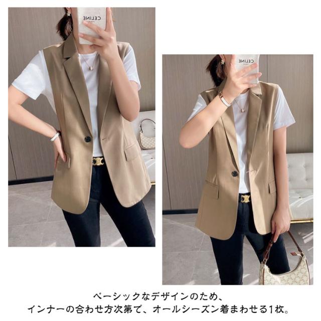 春 送料無料 ジレ 大きい 前開き オフィス 体型カバー ノースリーブ テーラードジャケット ベスト ゆったり 通勤 フォーマル バックスリット レディース 羽織 女子 スーツベスト 秋 トップス アウター 事務服 大人 おしゃれ きれいめ 夏