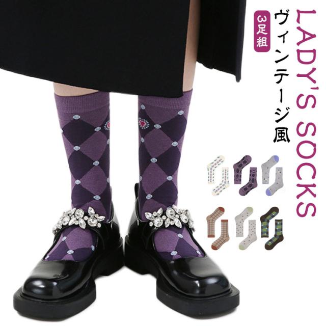 秋色 クルー丈 ミドル丈 靴下 くつした クルーソックス 3足セット 靴下 レディース チェック柄 花柄 スニーカーソックス 花柄 北欧 ヴィンテージ風 ソックス 靴下 ソックス おしゃれ 靴下 靴下 レトロ チェック ソックス 夏用 靴下 ソックス 秋用 女性用 ウサギ