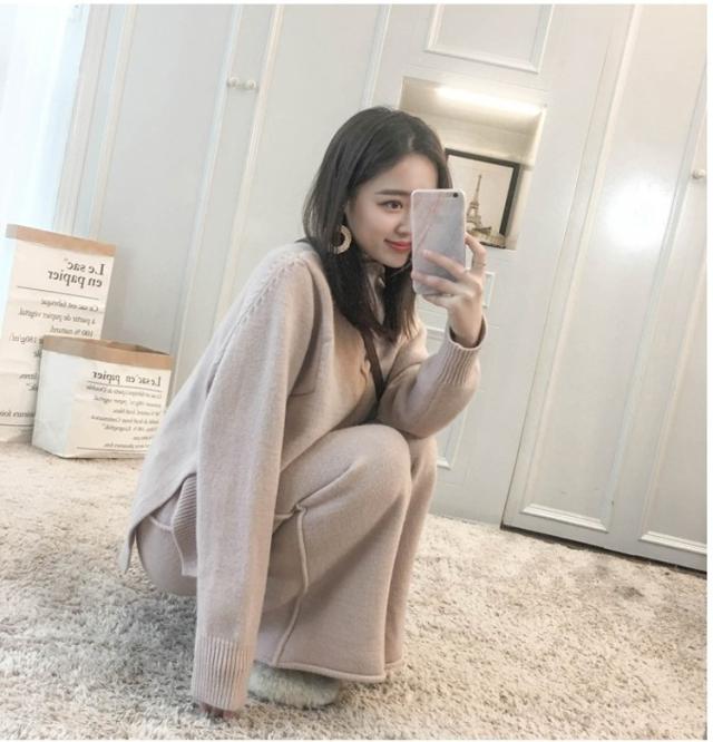 パンツセットアップ レディース リブニットセットアップ セットアップ ニット 2点セット 秋 冬 上下セット ニットパンツ ニットセーター ガウチョパンツ ワイドパンツ 無地 ゆったり