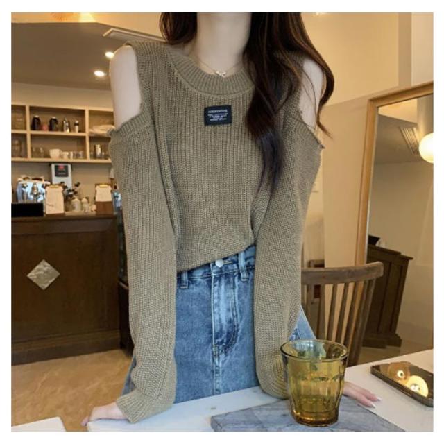 長袖 春 レディース トップス tシャツ カットソー 秋 リブ 細身 肩あき 肩出し スリム リブ編み タイト ニット レイヤード風 トップス カジュアル 肌見せ 韓国ファッション かわいい シンプル タートルネック フェミニン カットソー