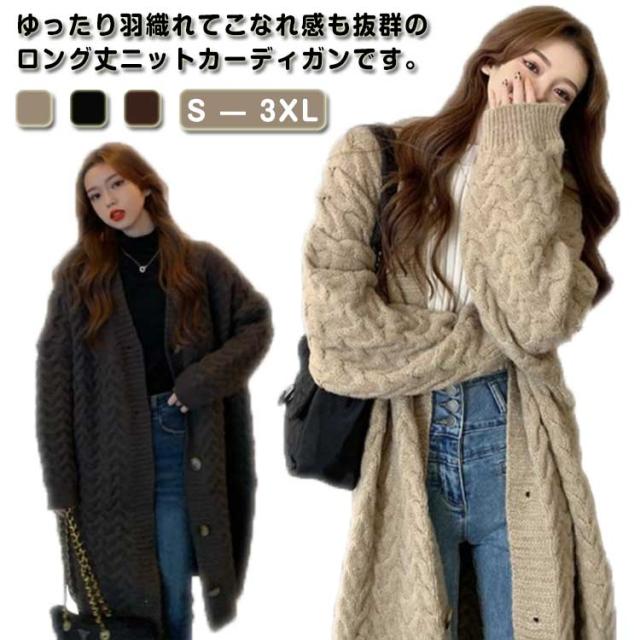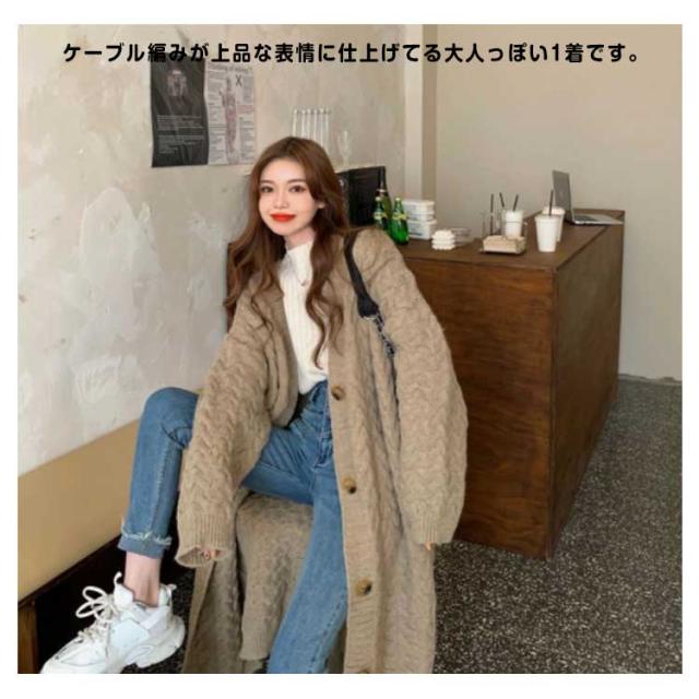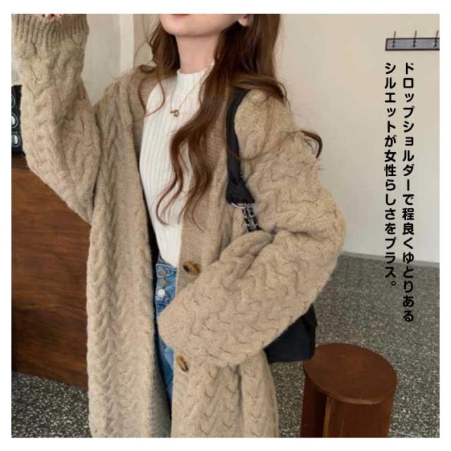 ニット 超ロング アウター ニットカーディガン ニット 長袖 ざっくり ロングカーディガン カーデ リブ レディース カーディガン ルーズ ケーブル編み ロング 前開き ボタン オーバーサイズ ドロップショルダー 大きいサイズ 秋 冬