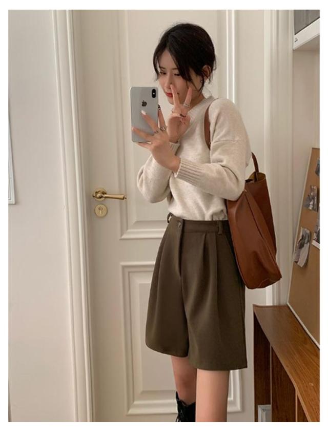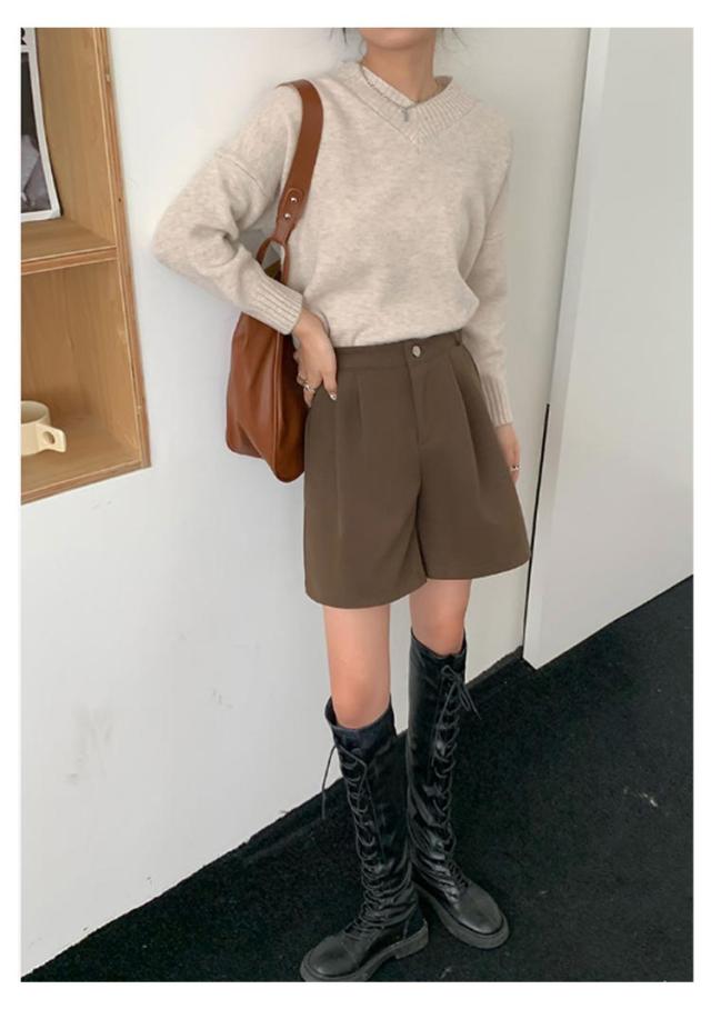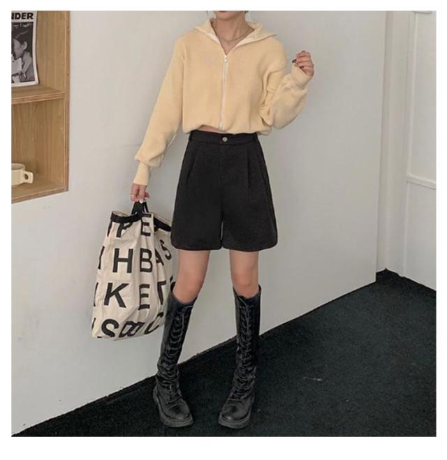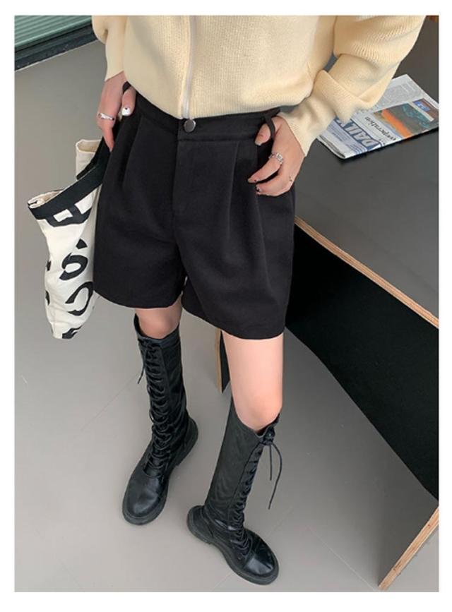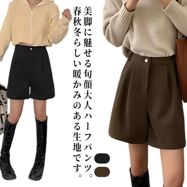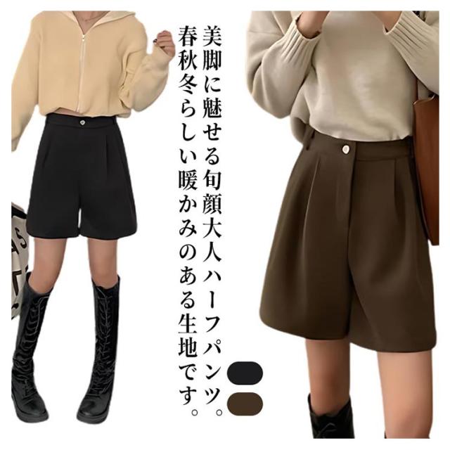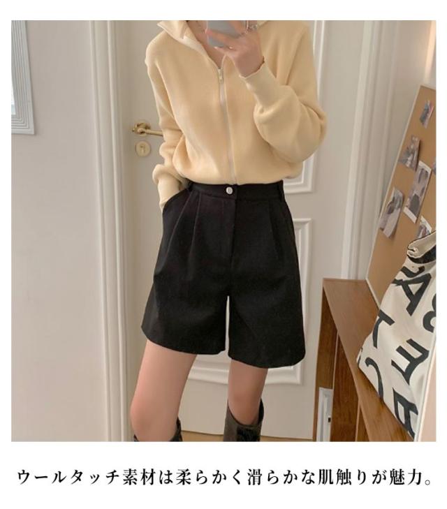 レディース 無地 膝丈 ハーフパンツ 秋冬 フェイクウール ウールタッチ ショーパン スラックス 冬 五分丈 ショートパンツ 半ズボン パンツ 暖かい 防寒 厚手 シンプル 大人可愛い カジュアル 大きいサイズ 春 秋 ワイドパンツ