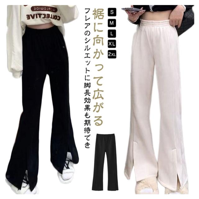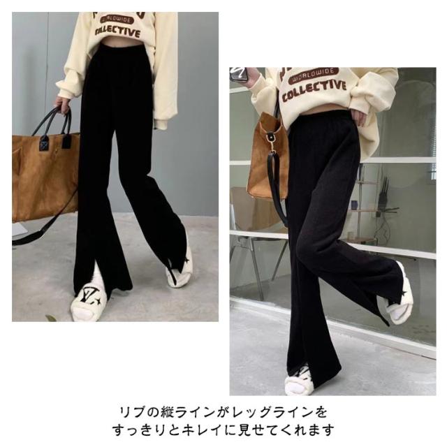 トールサイズ パンツ リブパンツ リラックス レディース 低身長 高身長 長め おしゃれ 長め 小柄 股下 小さいサイズ ボトムス 大人 可愛い サイドスリットフレアリブパンツ おとな きれいめ 女性 レディース ファッション 春 高見え 冬 秋