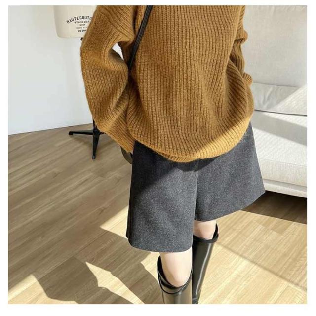 秋冬 フェイクウール ウールタッチ 無地 ハーフパンツ ワイドパンツ キュロットパンツ レディース ショートパンツ 短パン 膝丈 防寒 パンツ ハーフパンツ ハーフ丈 半ズボン 五分丈 暖かい 厚手 シンプル 大人 可愛い カジュアル 大きいサイズ 春 秋 冬