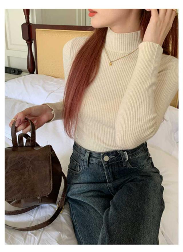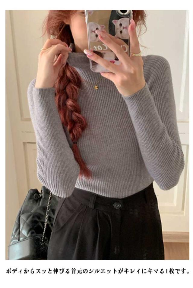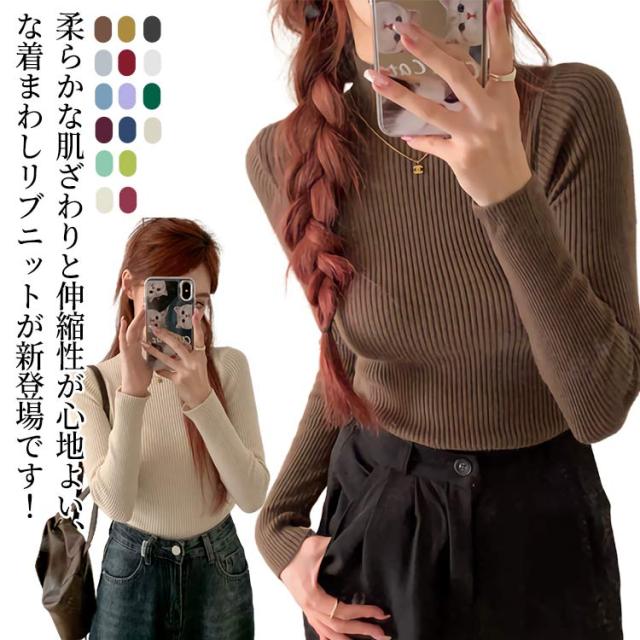 ニット トップス 春 ハイネックニット ハイネック レディース インナー セーター トップス 重ね着 リブ リブ カジュアル 軽い 長そで 体型カバー リブ 秋 冬 オフィス カラフル きれいめ 長袖