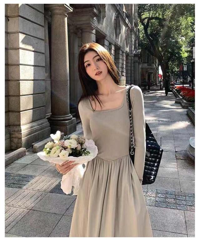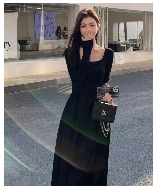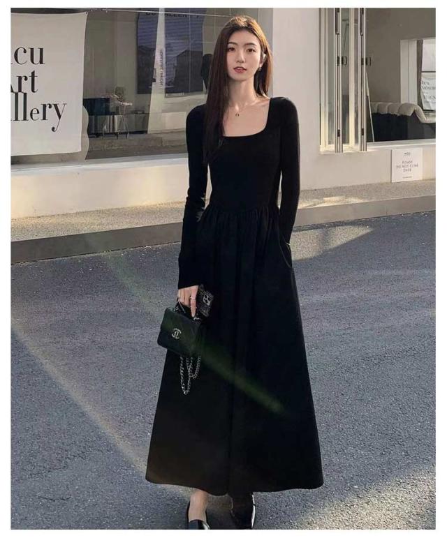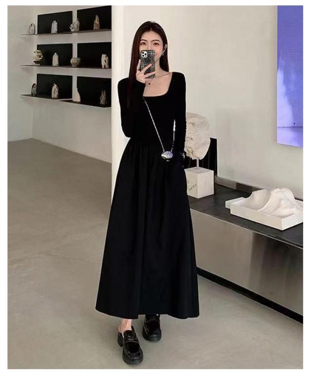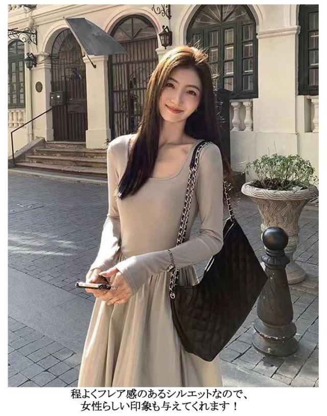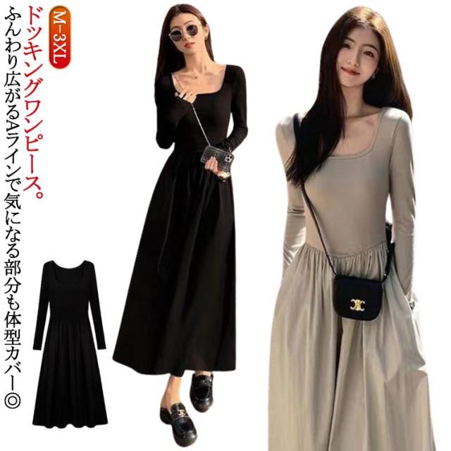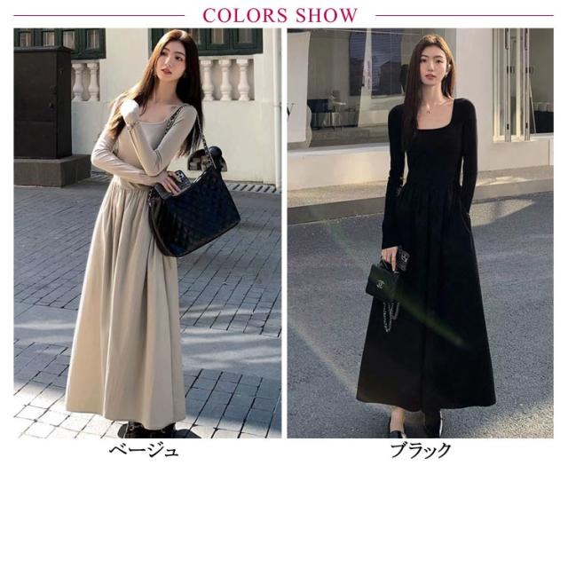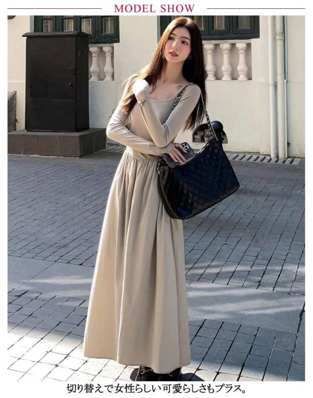 秋 ニットワンピース きれいめ 冬 ニットワンピ Uネック 高身長 切り替え フレア ワンピース 春 ドッキングワンピース ワンピース 長袖 ロングワンピース マタニティ 春秋 異素材 低身長 レディース 無地 Aライン 着痩せ マキシ丈 インナーワンピース エレガント