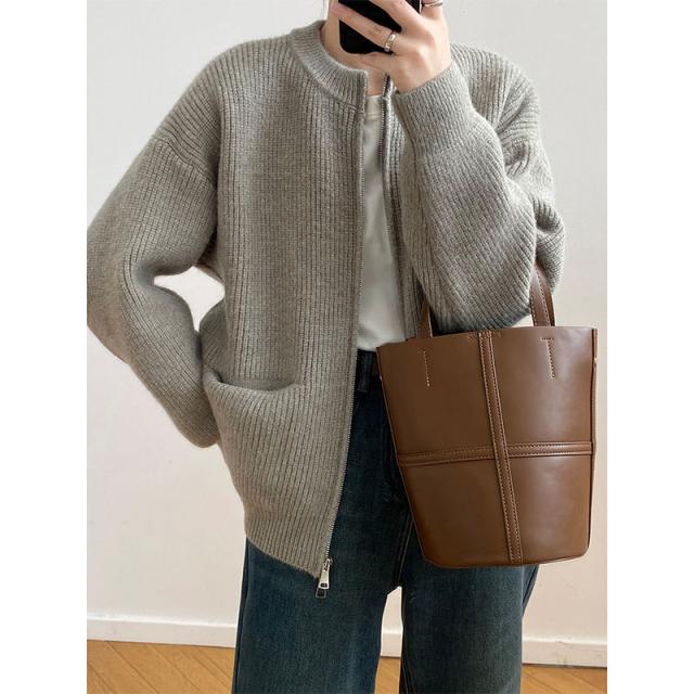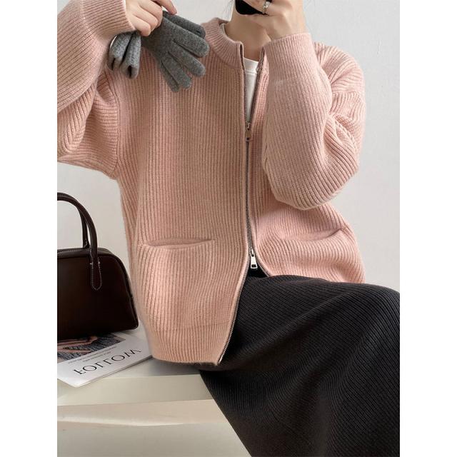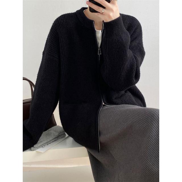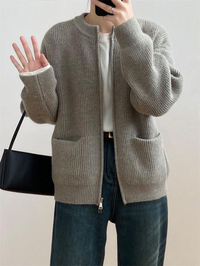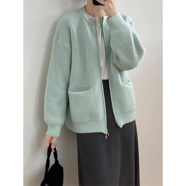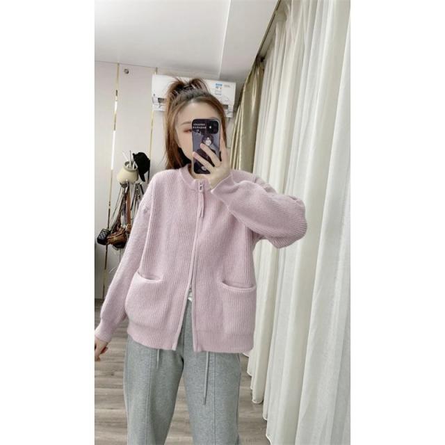カーディガン レディース 長袖 ニットカーディガン ジッパー 薄手 春 秋 羽織り 体型カバー カジュアル シンプル おしゃれ 韓国