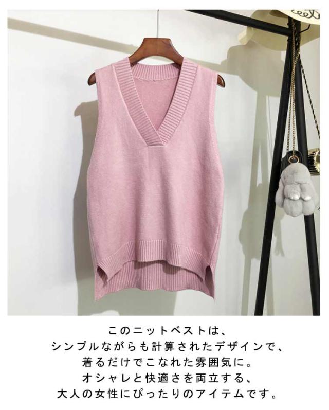 プルオーバー Vネック ニットベスト ニット ベスト レディース ベスト フリー ジレ 重ね着 ノースリーブ セーター ニットチョッキ シンプル かわいい 無地 普段着 通勤 秋 冬 大人 オフィス トップス きれいめ レイヤード カジュアル