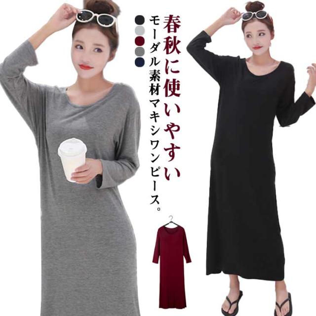 マキシ丈 モーダルワンピース ワンピース 夏 マキシワンピース 大きサイズ ストレッチ 春 秋 薄手 部屋着 リラックス 在宅着 ロング丈 モーダル生地
