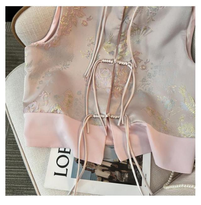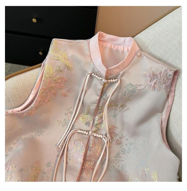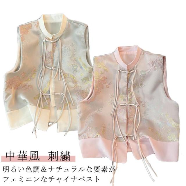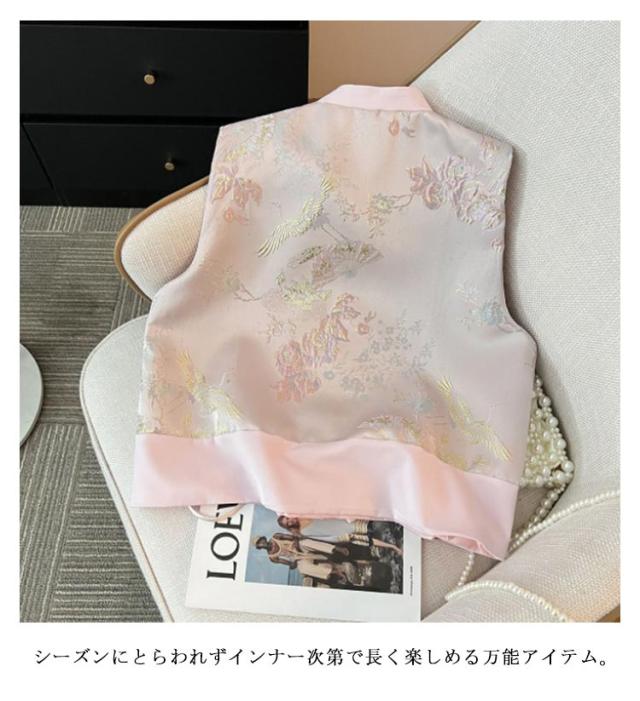 ミドル丈 春 レディース 唐装 チャイナボタン 冬 ジレ チャイナ 秋 チャイナベスト 夏 チャイナジレ 前開き ベスト スタンドカラー トップス ノースリーブ 羽織り 中華風 刺繍 柄 タッセル ジャカード サマージャケット フェミニン 重ね着 レイヤード 上品 ベスト
