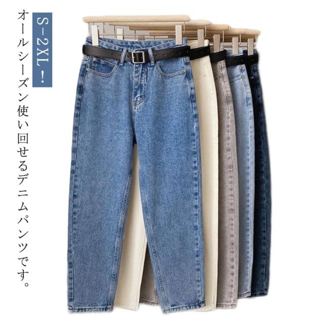 テーパードデニム デニムパンツ レディース デニム ロングパンツ ジーンズ ベルトなし ストレートパンツ ハイウエスト テーパードパンツ ジーパン ゆったり 長ズボン 美脚 おしゃれ ボトムス 女子 学生 春 夏 秋 冬 オールシーズン 大きいサイズ 送料無料 S-2XL
