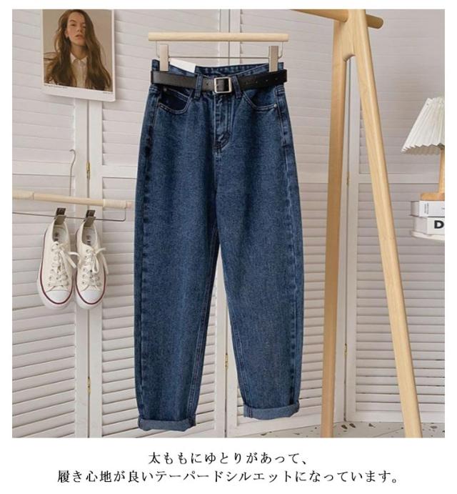 | S-2XL!オールシーズン使い回せるデニムパンツです。 トレンドのハイウエストデザインでおなか周りカバー&足長を演出! 太ももにゆとりがあって、履き心地が良いテーパードシルエットになっています。 裾をロールアップするとこなれ感UP! トップスのフロントをインしたり、ワンピースとのレイヤードコーデでゆるっとしたシルエットを演出したりと、様々なスタイルが楽しめます! 程よい厚さでこれからの秋や冬はもちろん、年中使えて一着持っているとコーディネートも楽しめます。 | |