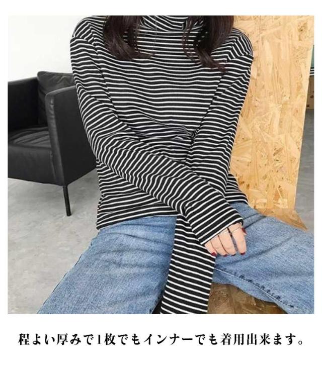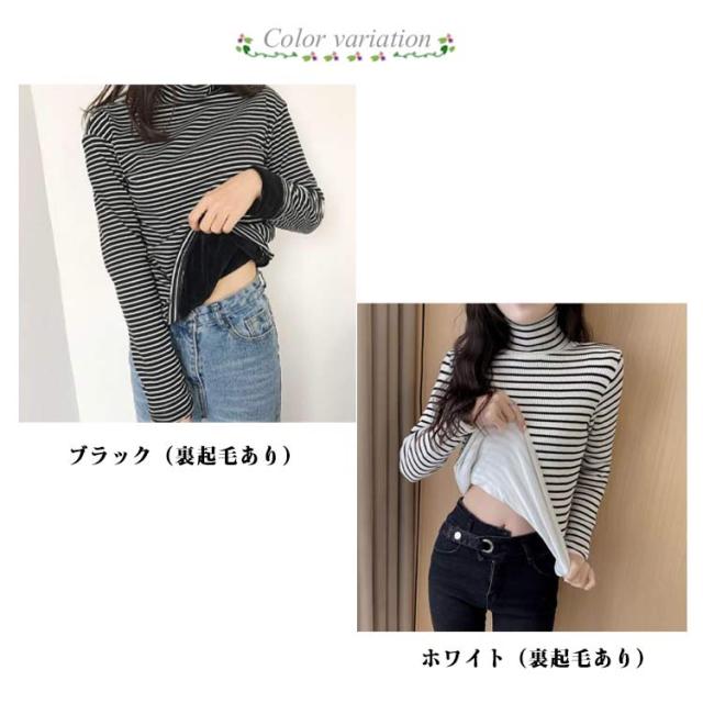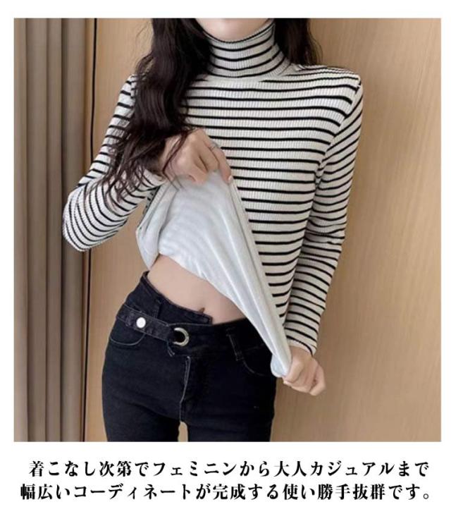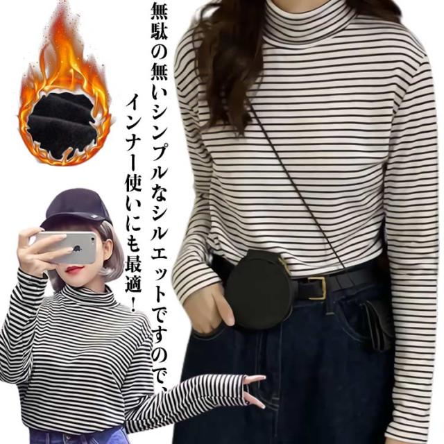 長袖 トップス インナー 秋冬服 冬用 秋 裏起毛 暖かい レディース ハイネック ボーダー 厚手 インナーtシャツ カットソー 保温 暖かい レディース タイト 着回し 重ね着 着心地 部屋着 カジュアル インナーウェア 大きいサイズ 無地 シンプル 冷え対策