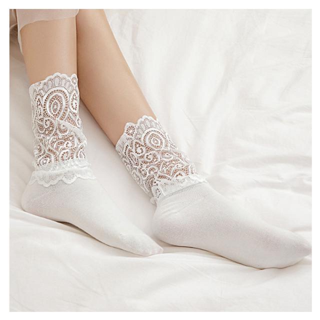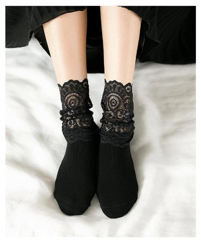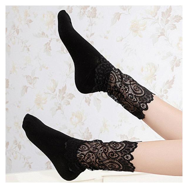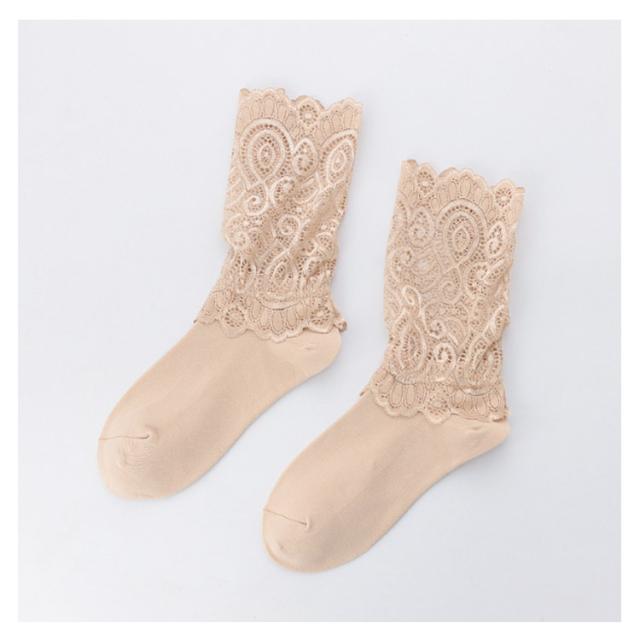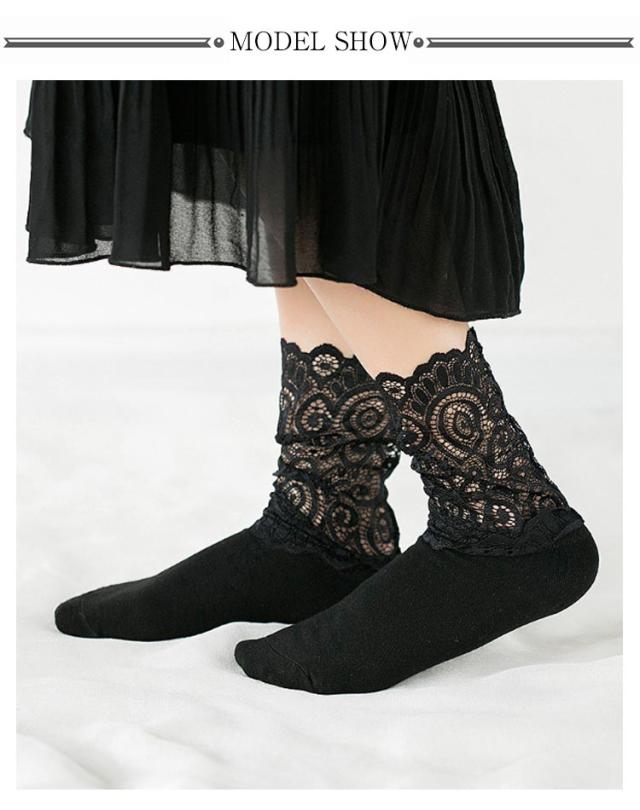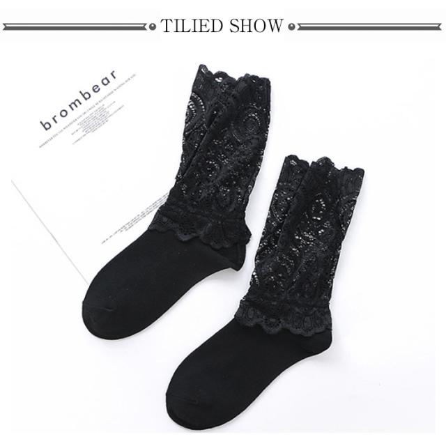 折り返し 2足セット そっくす レディース 靴下 秋 シースルー レディース レースくつ下 ハイソックス 25センチ ベージュ レース ソックス 冬 レース靴下 スニーカー くつした 2足組 ブーツ ソックス ブラック ホワイト ソックス