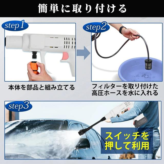 専用な水源の必要がなくて、池、バケツでも利用できて、面倒な水道栓の接続作業もなく洗浄の準備が簡単です。(*バケツが付属無し、別途で購入してください)