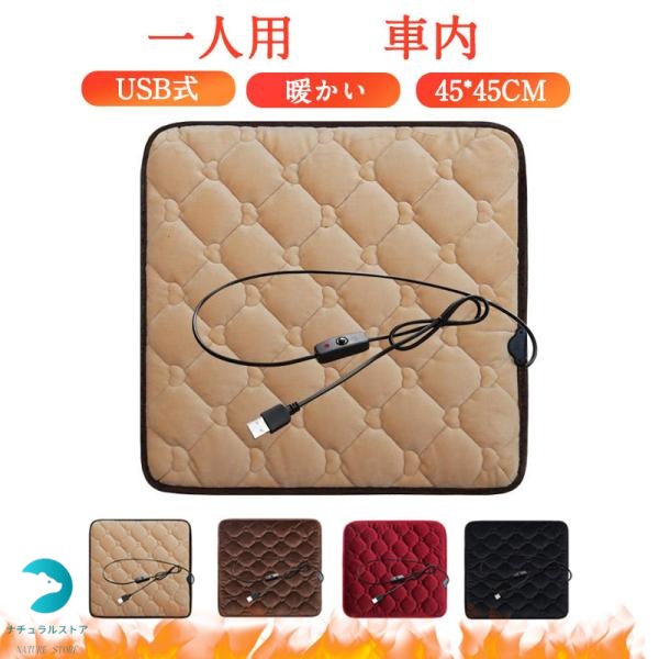 ホットマット 一人用 ミニ ホットカーペット 45*45cm 電気 ヒーター ペット 足元 USB 椅子 座布団 キャンプ 車内 アウトドア オフィス 送料無料