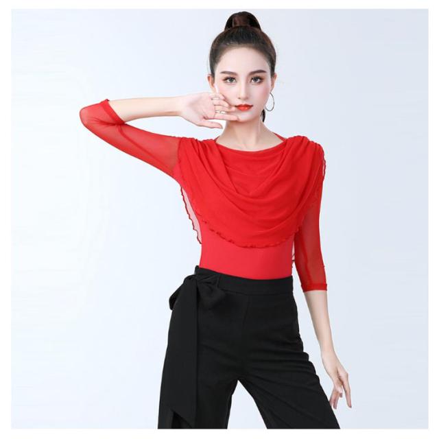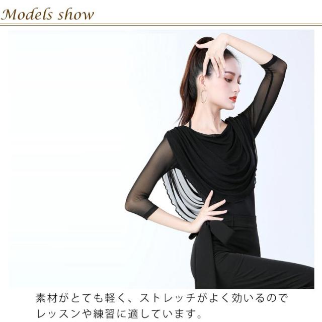 社交ダンス レディース 上着 モダン トップス ダンス 社交ダンス ラテンダンス レッスンウェア スタンダード タンゴ ワルツ トップス 単品 七分袖 ビッグ襟 初心者 入門ステップ 上級者 競技会 練習着 大きいサイズ 女性 フリル 発表会 団体演出服