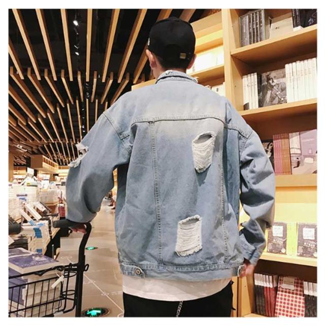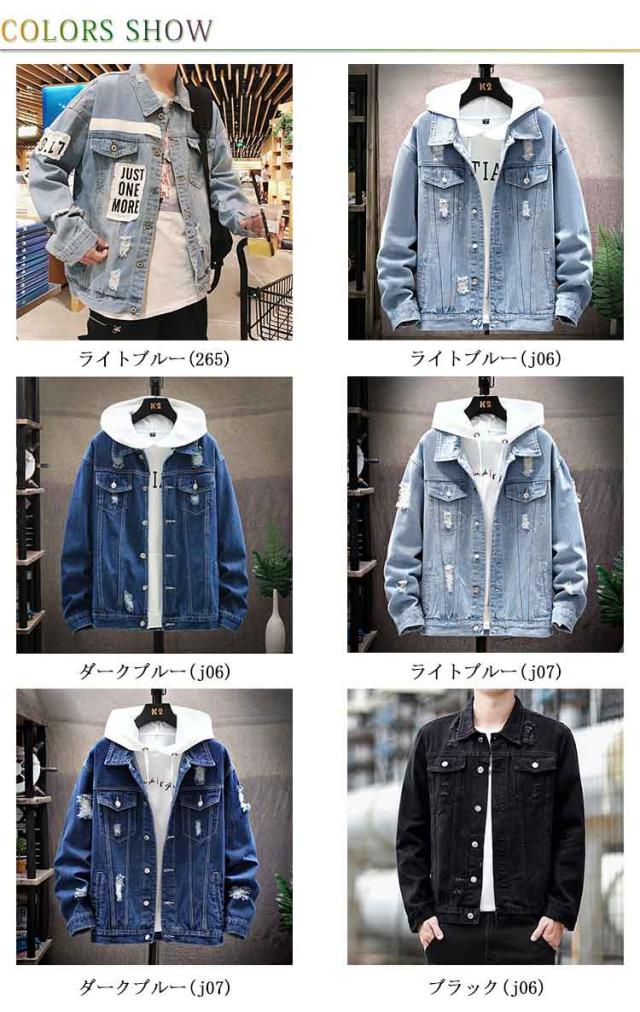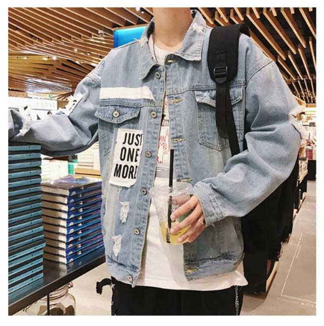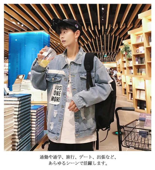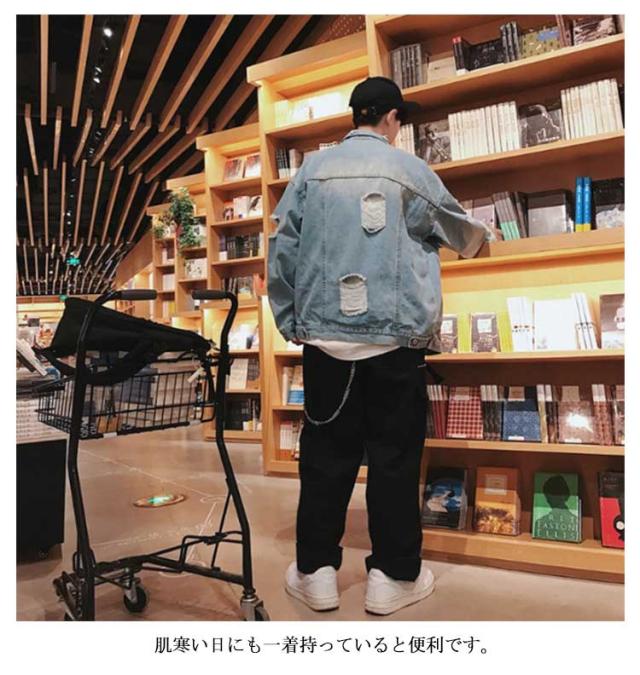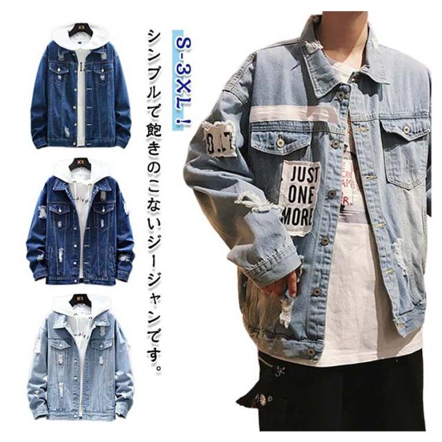 デニムジャケット ジージャン 秋服 デニムジャケット メンズ 春服 ダメージ アウター 春ジャケット デニムブルゾン ゆったり 折り襟 ブルゾン 大きいサイズ ビッグシルエット 20代 30代