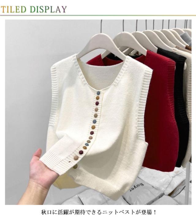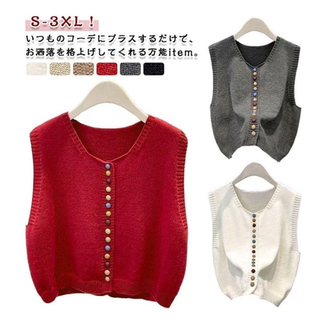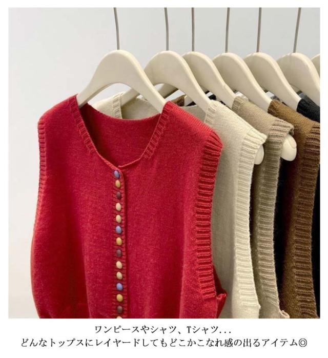ノースリーブ カラフルボタン レディース 春 冬 ベスト ニット カラフルボタン 秋 トップス クルーネック セーター レイヤード 重ね着 大きいサイズ ゆったり カジュアル 大人可愛い