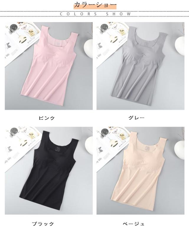 ブラタンクトップ ブラトップ カップ付きタンクトップ インナー パット付 2枚セット 締め付けない ズレない タンクトップ ラウンドネック 肌着