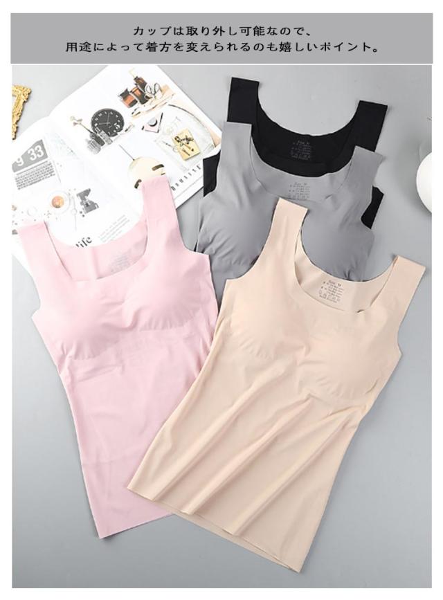 | ・1枚で着られるブラトップ仕様 ・ブラジャーの締めつけが苦手な方へ ・カップは取り外し可能なので、用途によって着方を変えられるのも嬉しいポイント。 | |