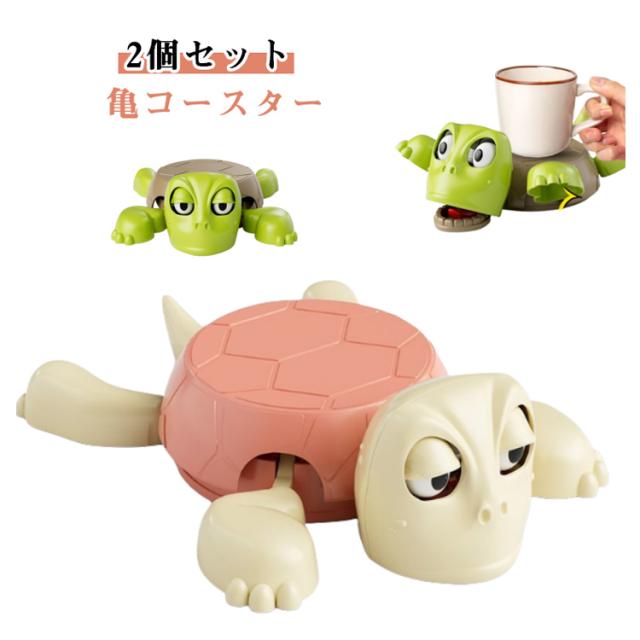 亀コースター コースター面白い リフト可能な手足と表情豊かな顔を備えた 2個セット カメのコップマット 面白いタートルコースター コースター 誕生日 ストレス解消 デスク用の風変わりなカメコースター プレゼント ギフト 亀デザイン