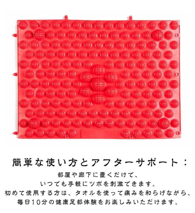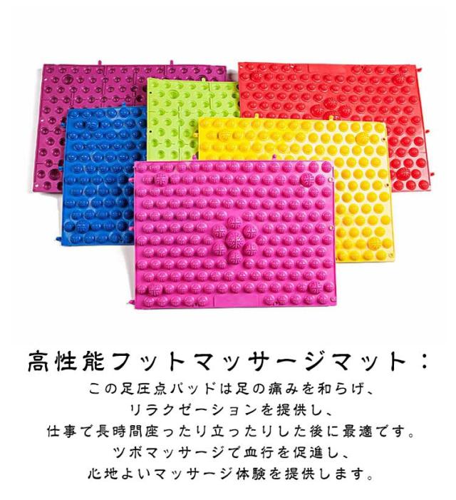 | サイズについての説明 | サイズ:写真通り サイズ:29*39cm 風呂に入りながらマッサージをする場合は 2 枚(滑り止めマット)が推奨されます。 歩きながらマッサージをする場合は 4 枚(マッサージ用)が推奨されます。 縄跳びやカケルクラゲ(ホップスコッチ)のゲームをする場合は 6 枚(縄跳び・カケルクラゲ用)が推奨されます。 ヨガをしながらマッサージをする場合は 10 枚が推奨されます。 会社での縄跳びイベントの場合は 27 枚が推奨されます。 ●サイズ詳細等の測り方はスタッフ間で統一、徹底はしておりますが、実寸は商品によって若干の誤差(0cm〜2cm )がある場合がございますので、予めご了承ください。 ※画像の商品は光の照射や角度により、実物と色味が異なる場合がございます。また表示のサイズ感と実物は若干異なる場合もございますので、予めご了承ください。 |