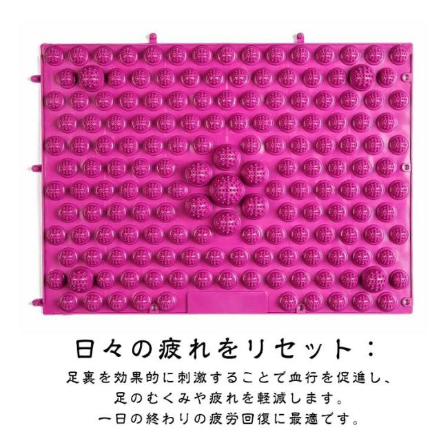| 高性能フットマッサージマット:この足圧点パッドは足の痛みを和らげ、リラクゼーションを提供し、仕事で長時間座ったり立ったりした後に最適です。ツボマッサージで血行を促進し、心地よいマッサージ体験を提供します。 日々の疲れをリセット:足裏を効果的に刺激することで血行を促進し、足のむくみや疲れを軽減します。一日の終わりの疲労回復に最適です。 簡単な使い方とアフターサポート:部屋や廊下に置くだけで、いつでも手軽にツボを刺激できます。初めて使用する方は、タオルを使って痛みを和らげながら、毎日10分の健康足部体験をお楽しみいただけます。 | |