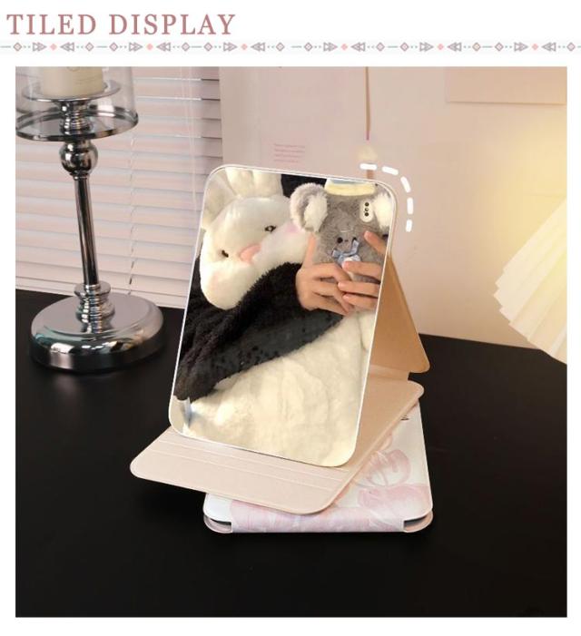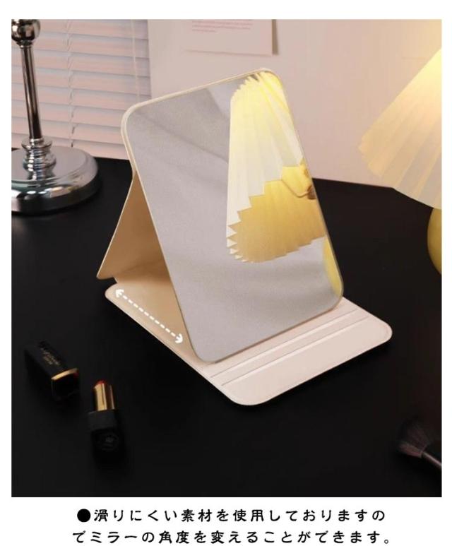 卓上ミラー レザー 鏡 化粧鏡 白 クッション 角型 スタンドミラー 折りたたみ ヘアメイク 携帯 メイク 黒 大型 メイク 巻き髪 ヘアメイク 卓上ミラー 持ち運び コンパクト フレームレス 旅行 トラベル オフィス インテリア
