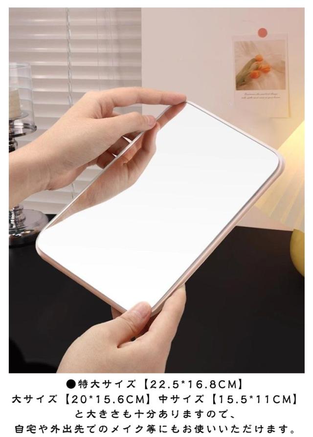 | ●折りたたみ式の化粧鏡です。 ●特大サイズ【22.5*16.8CM】大サイズ【20*15.6CM】中サイズ【15.5*11CM】と大きさも十分ありますので、自宅や外出先でのメイク等にもお使いいただけます。 ●折りたたむことができるため、持ち運びにも便利です。 ●滑りにくい素材を使用しておりますのでミラーの角度を変えることができます。 ●PUレザーを使用したおしゃれなデザイン。 | |