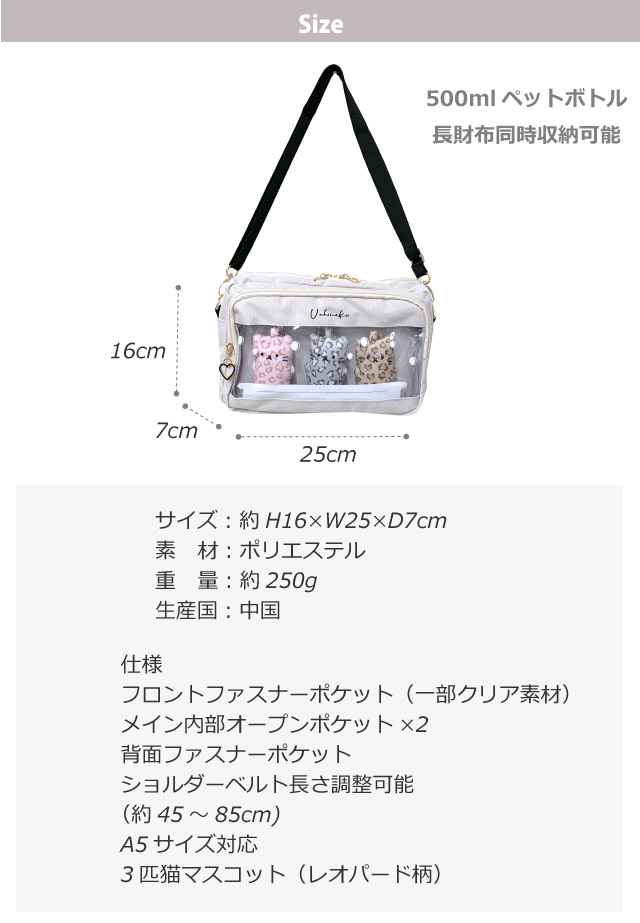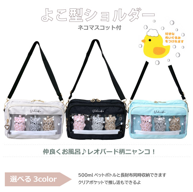 ■イメージ:おしゃれ お洒落 人気 人気 ランキング 可愛い かわいい 使いやすい 黒 ブラック グレー 水色 ブルー ねこ 猫 ネコ B6サイズ オルチャン 韓国 韓国風 小型 小さめ おすすめ 流行 長財布収納可能 ペットボトル収納可能 無料ラッピング袋 ラッピング対応 推し活 推し活バッグ 推し活ショルダー レオパード ヒョウ柄 豹柄