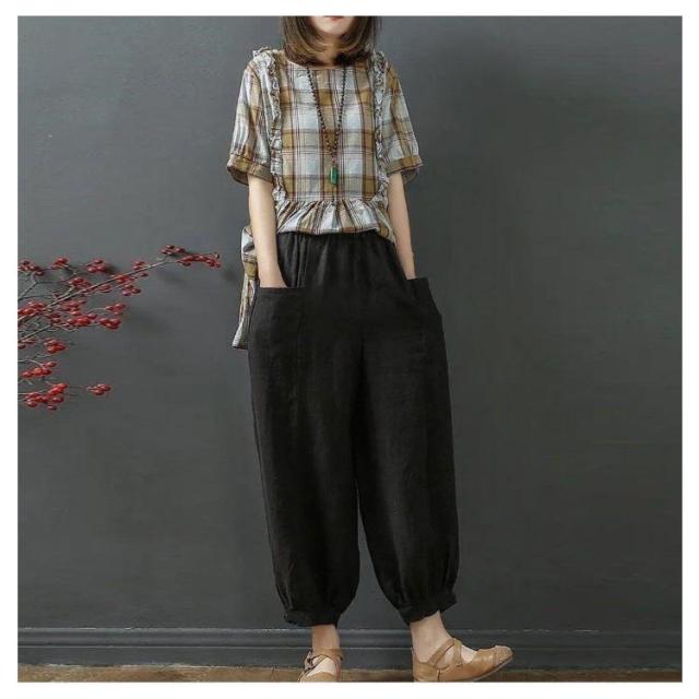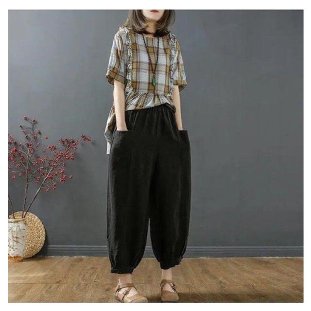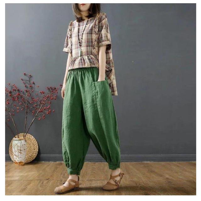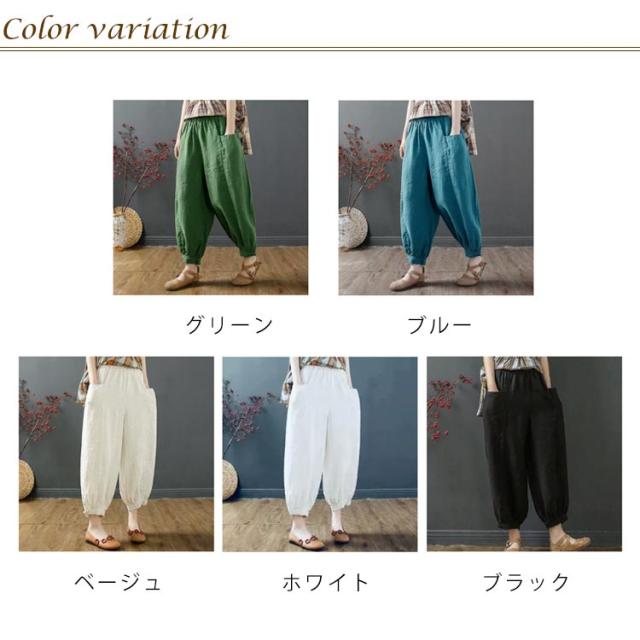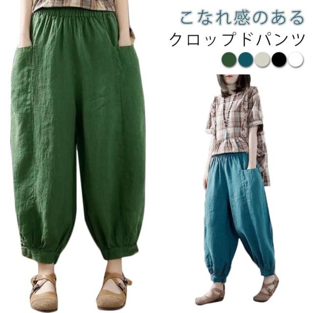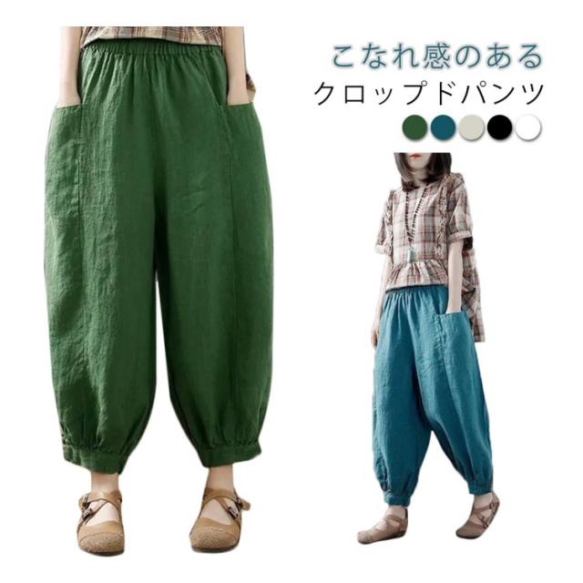 クロップドパンツ 綿麻風 イージーパンツ レディース 9分丈 夏 パンツ ウエストゴム 7分丈 リネン メンズ 無地 綿麻パンツ レディース 麻 ズボン 春夏 美脚 パンツ 体型カバー ゆったり サルエルパンツ キャンバス