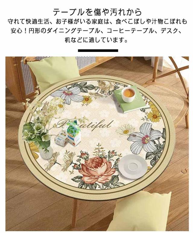 | 【直径60cm/70cm/80cm/90cm/100cm】【PVC製】【防水 耐熱 高級感】 敷くだけで明るい雰囲気になり、食卓が華やかになります。 防水加工なので、ほとんどの水性および油性の液体をはじきます。 テーブルを傷や汚れから守れて快適生活、お子様がいる家庭は、食べこぼしや汁物こぼれも安心!円形のダイニングテーブル、コーヒーテーブル、デスク、机などに適しています。 特殊な高級PVCを使用しているため水や汚れなどにも強くさっと拭き取ることができてお手入れも楽々です。 テーブルクロス表面PVC素材製は、最高の耐熱は摂氏80度に達する、油汚れ、あらゆる種類の飲料、水汚れを防ぎます。 シンプルで上品のデザインで、デスク、テーブル、学習デスク、ティーテーブル、ポーカー、アスレチックスなどに使用できます。 | |