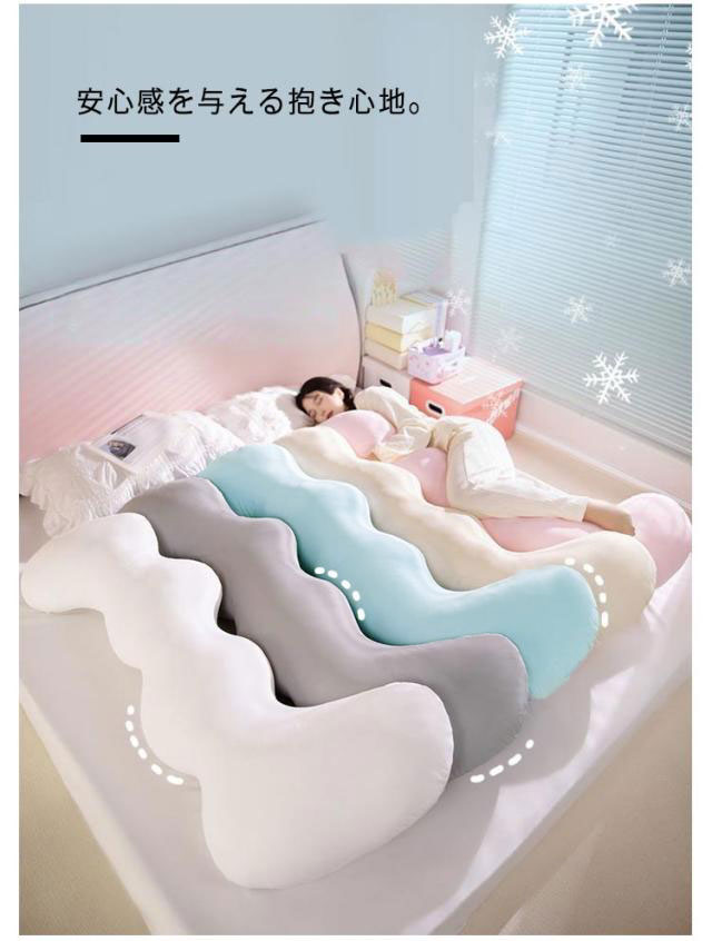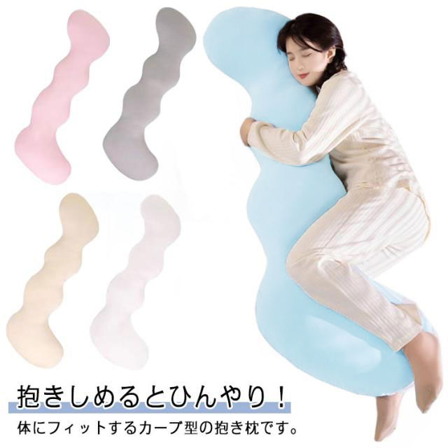 | 抱きしめるとひんやり! 体にフィットするカーブ型の抱き枕です。 安心感を与える抱き心地。 カバーはとりはずして洗えます。 足に挟んでリラックス効果抜群! 妊婦さんにおすすめ、横向き寝 シムス体位が取りやすい♪ | |